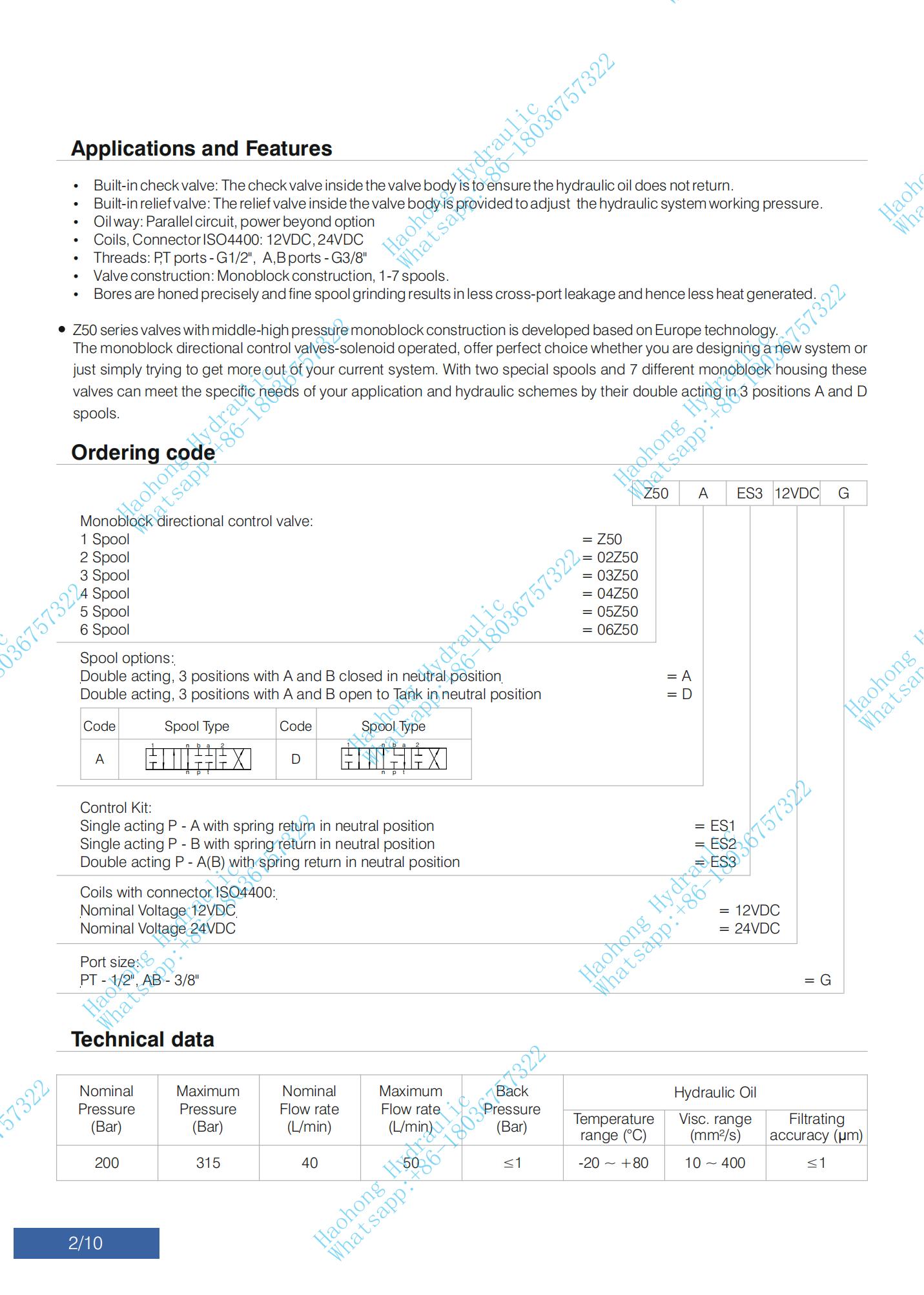 Z50 – Solenoid directional control valve Z50系列电磁控整体式多路换向阀