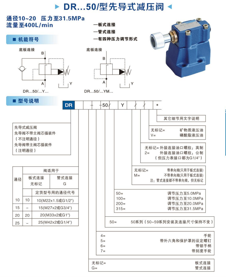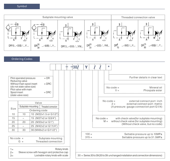 DR20 pilot operated pressure reducing valves
