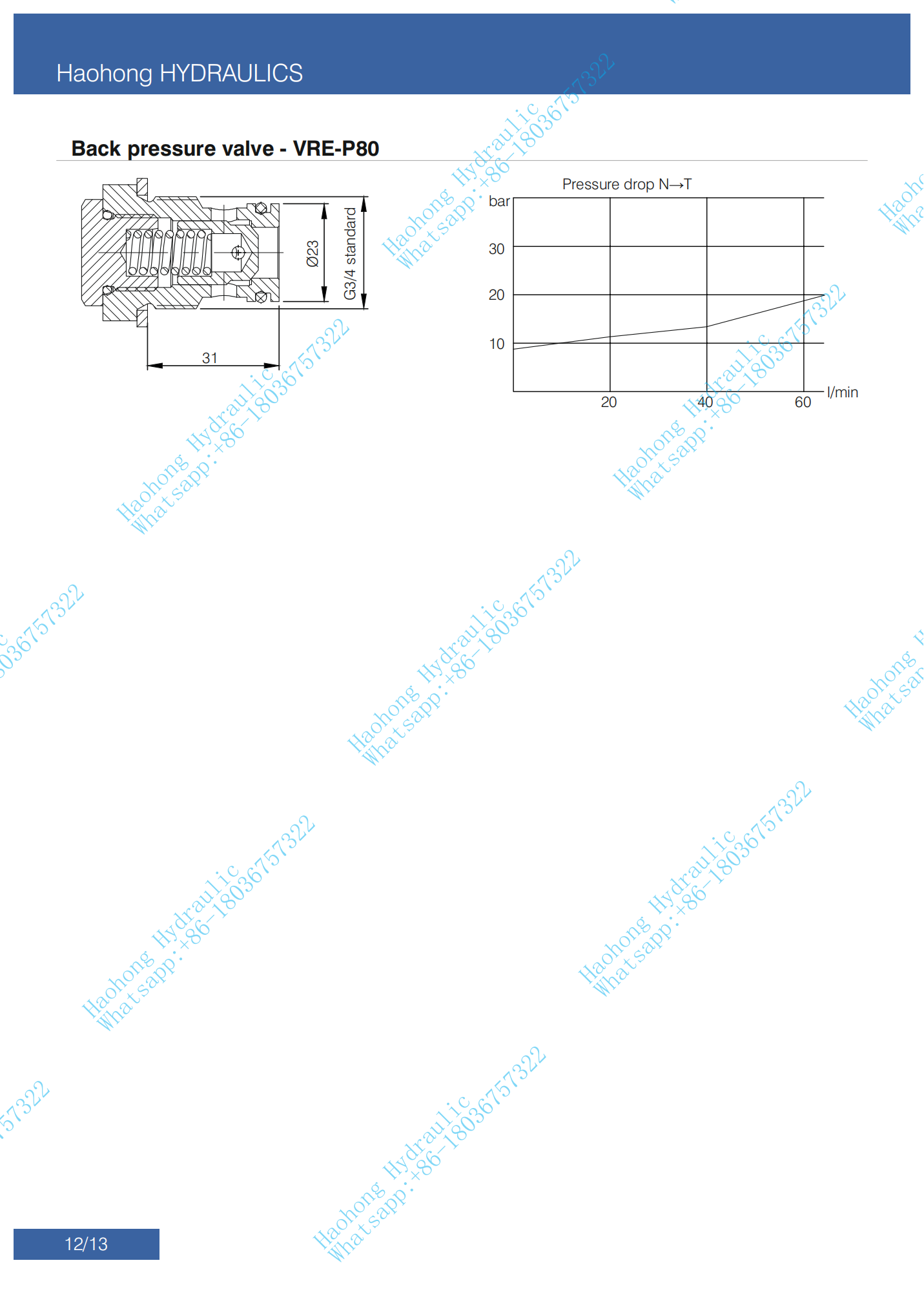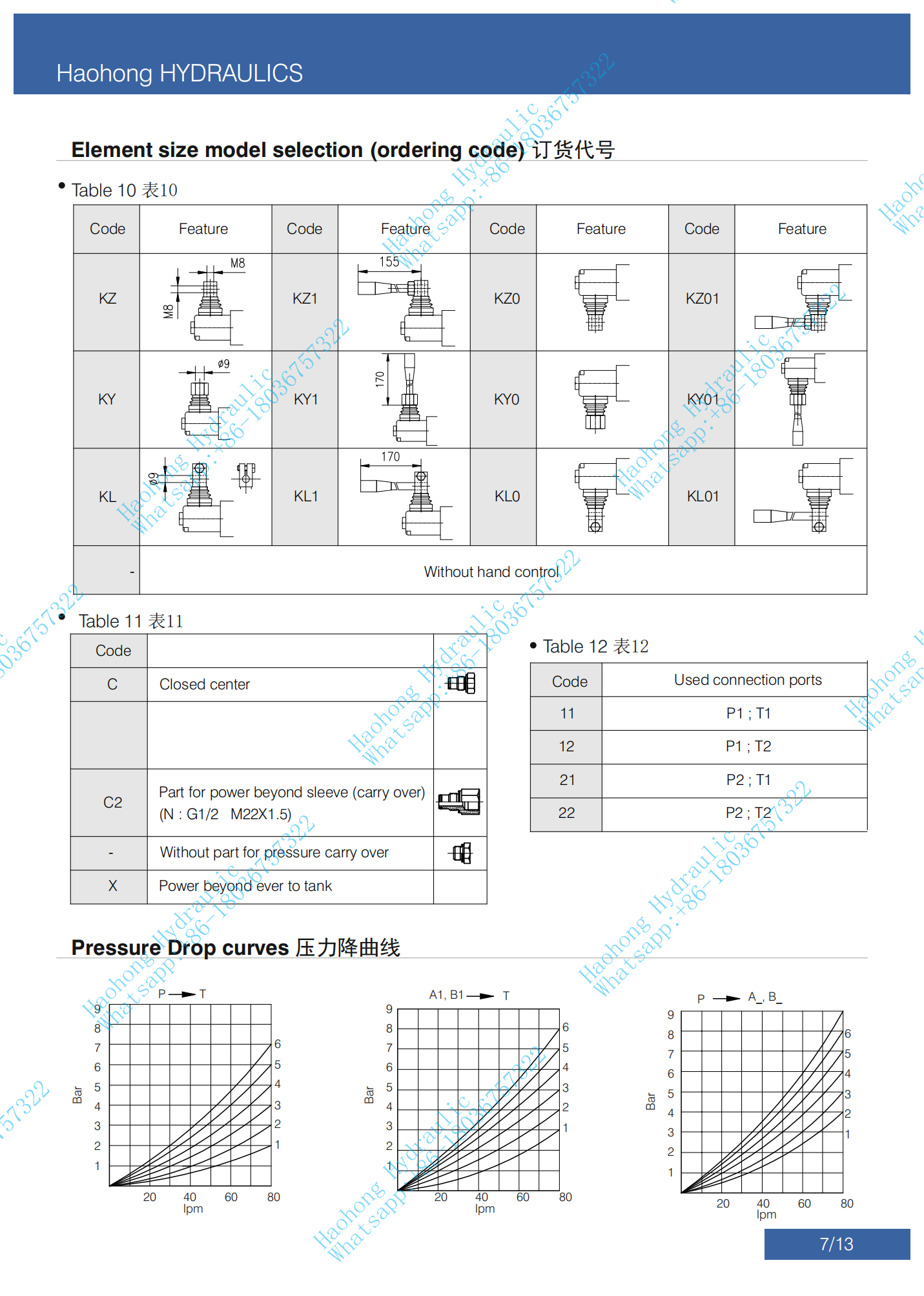 | Operating Pressure | Maximum 250 bar at P Port |