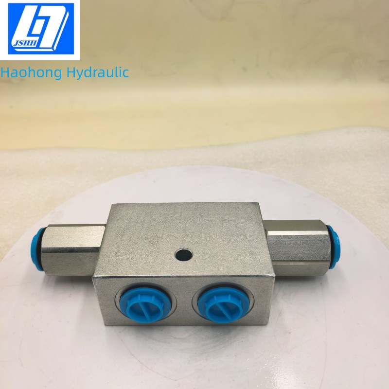 当V1和V2既没有油液进入,也没有油液排出时,该款液压锁对油缸进行保压。